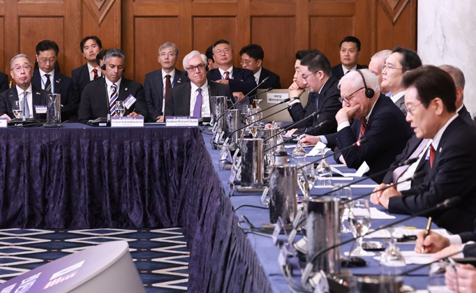 25ÀÏ(ÇöÁö½Ã°£) ¹Ì±¹ ¿ö½ÌÅÏDC Àª¶óµå È£ÅÚ¿¡¼ ¿¸° ÇÑ¹Ì ºñÁî´Ï½º ¶ó¿îµå Å×ÀÌºí¿¡ Âü¼®ÇÑ ÀÌÀç¿ë »ï¼ºÀüÀÚ È¸Àå, ±¸±¤¸ð LG±×·ì ȸÀå, ¹ÚÁö¿ø µÎ»ê¿¡³Êºô¸®Æ¼ ȸÀå µî ±â¾÷ÀεéÀÌ ÀÌÀç¸í ´ëÅë·ÉÀÇ ¹ß¾ðÀ» µè°í ÀÖ´Ù. 2025.8.26(»çÁø=ÀúÀÛ±ÇÀÚ(c) ¿¬ÇÕ´º½º, ¹«´Ü ÀüÀç-Àç¹èÆ÷ ±ÝÁö)